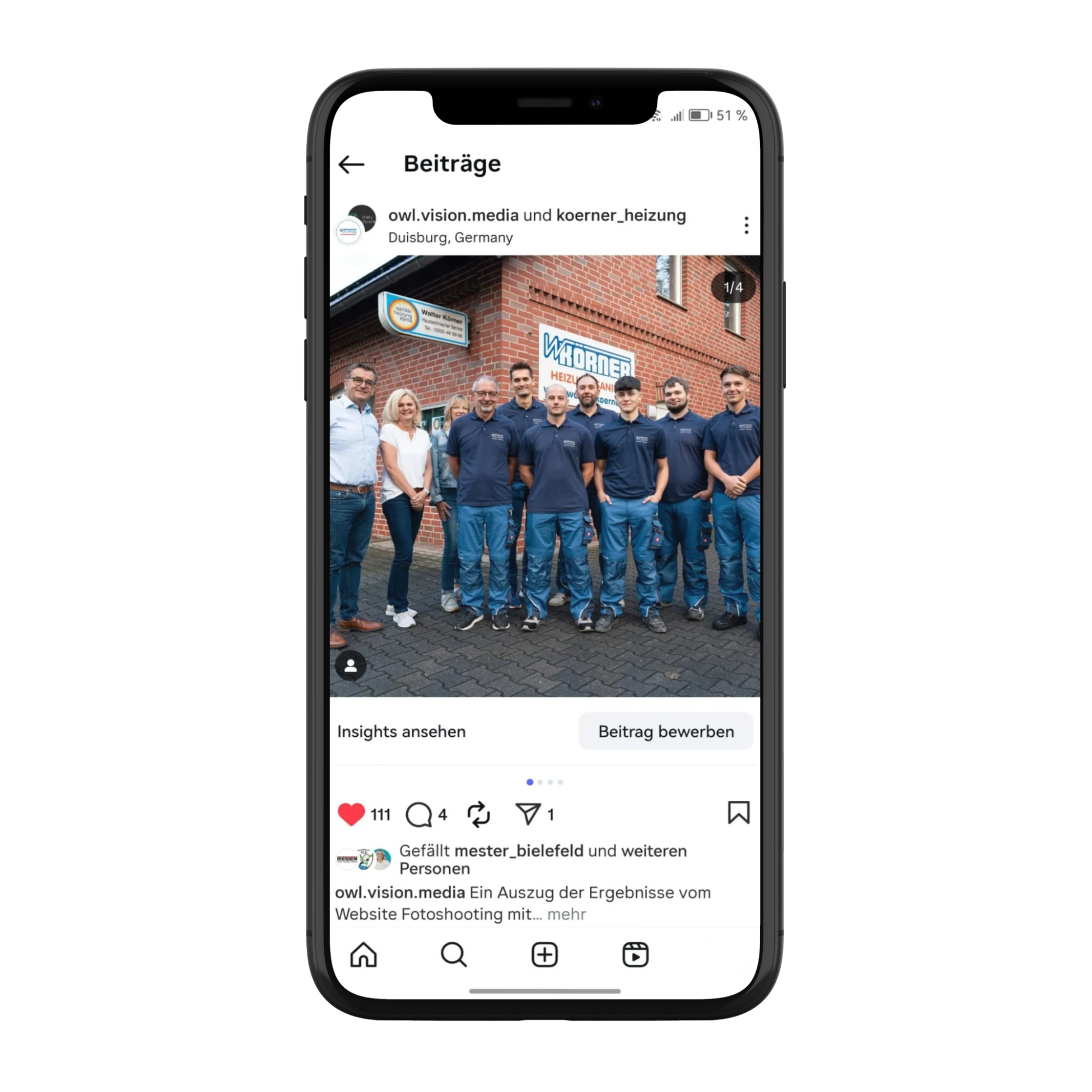 Erste Reichweite und Interaktionen entstehen sofort nach dem Start. Spürbare Ergebnisse wie neue Kundenanfragen oder Bewerbungen sind sehr zielgruppenabhängig und variieren von Kunde zu Kunde.
